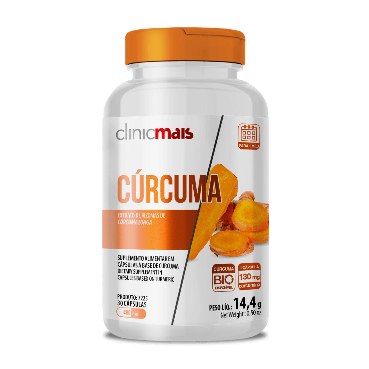 INGREDIENTES: Extrato de rizomas de cúrcuma (Curcuma longa L.). Excipientes: amido e celulose microcristalina. Antiumectantes: estearato de magnésio e dióxido de silício. Composição da cápsula: gelatina. NÃO CONTÉM GLÚTEN.