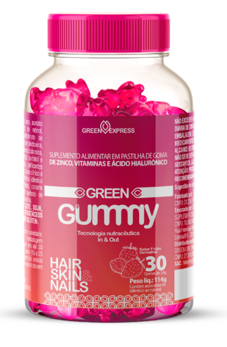 O Green Gummy é um suplemento alimentar inovador desenvolvido para promover a saúde e a beleza de cabelos, pele e unhas. Com uma fórmula rica em ingredientes de alta qualidade, como zinco, vitaminas e ácido hialurônico, cada goma sabor frutas vermelhas oferece uma abordagem saborosa para uma beleza radiante.